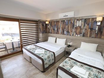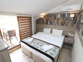 Отель соответствует цена-качество. Неплохой отель для кратковременного пребывания. Чистое постельное белье, приветственные 2 бутылки воды при заезде. Есть своя миникухня, в которой есть электрический чайник, плитка на 2 конфорки, кастрюля, сковорода, несколько тарелок, чашек и столовые приборы. Можно готовить кушать самим, ценники в кафе внизу отеля в ресторане дорогие. Также есть небольшой балкон, там 2 стула и стол, мы кушали на балконе, другие постояльцы тоже. Рядом с отелем магазин Мигрос, можно купить всё необходимое. В ванной приветственные гели и шампуни. А вот вода в отеле греется только от солнца, учитывайте это, поэтому в душевой она всегда комнатной температуры. Горячей или теплой ее не назовёшь. Также надо учесть, что ресепшна в отеле нет, он находится в другом отеле в минуте ходьбы. Также есть бассейн, средних размеров. Когда мы отдыхали, у бассейна было всего несколько человек или вообще никого не было, поэтому мы наслаждались отдыхом. Номер был на 3 этаже, мансардного типа, поэтому приходилось нагибаться, чтобы лбом не врезаться в потолок или стену. Особенно при выходе на балкон. А так в принципе нормальный вариант размещения. И нужно ещё учесть, что в ресторане громкая музыка слышна допоздна, у нас окна выходили на бассейн, а вот если окна будут на улицу, то по этой причине будет не очень комфортно. И кому понадобится информация как добраться, мы ехали от аэропорта Даламан до Отарджи (автобус на Мармарис, 110 лир с человека), там пересели на долмуш от отогара до Саригермы (67 лир с человека). Такси от/до аэропорта 25-30 евро.