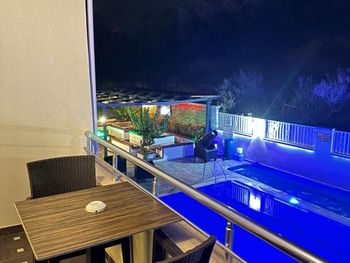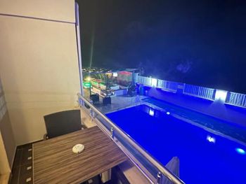 1. В бассейне нет поручней для того, чтобы нормально зайти в воду и выйти из воды, да и месторасположение бассейна неудобное - надо пройти через весь ресторан и выйти обратно - в мокрой одежде и полуголым это не очень приятно.
