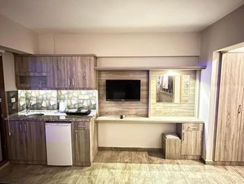 Отличные апартаменты, расположенные в самом центре маленького курортного городка Саригерме. Прекрасный, уютный, курортный городок, расположенный всего в 18 минутах(на машине) от аэропорта. Много маленьких магазинчиков и ресторанов. У нас был самый дальний номер(511) на третьем этаже(мансарда), с видом на холм и бассейн. Поэтому, все наши опасения по поводу громкого звука из ресторанов были напрасны, мы ничего не слышали. Да, до нас доносилась какая-то музыка, но она была настолько тихая, что мы даже не обращали внимание. И это при отрытой террасе :) Номер у нас был большой, на три кровати, с большой кухней-коридором. Номер дочери, в котором она жила с мужем(609), был намного меньше и с маленькой кухней, но тоже выходил на холм и бассейн. Это я о том. что все номера разные и грохот музыки(о котором писали тут в отзывах) и размер номера, могут отличаться друг от друга. Есть номера на втором этаже, которые выходят на центральную улицу, наверное там есть такие проблемы(со громкой музыкой из ресторанов). Тут как повезёт :) Спасибо сотруднику на ресепшене, который поселил нас именно в этот прекрасный номер, самый тихий и большой :) Каждый день убирали мусор, раз в три дня меняли бельё. Рядом(напротив) супермаркет Мигрос. Недалеко ещё один супермаркет, но всё там чуть дороже. До пляжа всего 15-18 минут неспешным шагом. Есть оборудованные пляжи(как муниципальные, так и пляжи отелей, которыми вы пользоваться не сможете, так как они только для гостей отелей), но есть и дикий пляж(3-4 километра длинной), где вы сможете быть почти одни :) Так что у вас есть выбор, что вам ближе, инфраструктура и комфорт или необорудованный дикий пляж, где вы можете уединиться и побыть одни. Были конечно и недостатки(о них ниже), но, в общем нам всё понравилось, мы с женой очень довольны :)