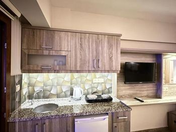 Грязное постельное белье, укатанная мебель, грязные посуда и кухонные принадлежности. Надменное поведение персонала. Отвечают на сообщения с большой неохотой и задержкой. Горничные ни бум-бум по-английски. Даже элементарное. Вода горячая появляется в кране с трудом.