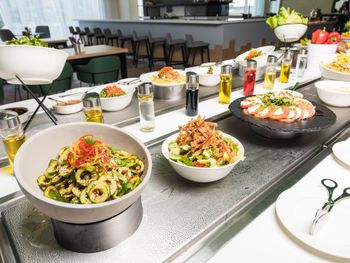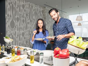 Гости комплекса Studio M Arabian Plaza Hotel & Hotel Apartments by Millennium могут насладиться широким выбором блюд интернациональной кухни, а также воспользоваться услугой Hello Grab &Go, которая предлагает еду навынос. По запросу для гостей готовят блюда без глютена и лактозы. Благодаря услуге Hello Grab &Go напитки Starbucks подаются и в лобби.