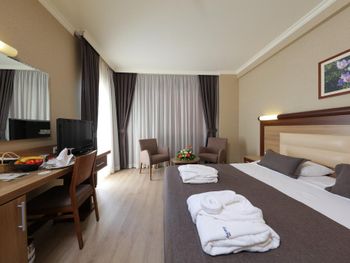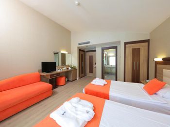 Также в вашем распоряжении разнообразные спа-удобства, среди которых массажные кабинеты, расслабляющая турецкая баня, хаммам и гидромассажная ванна. Если вы ведете активный образ жизни, вы сможете воспользоваться фитнес-центром и теннисным кортом на территории отеля. Для детей в отеле Sueno Beach Side предусмотрены детский бассейн с водными горками и игровая площадка.