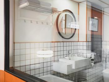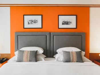 Грязный и пыльный пол, много пыли на мебели, мошки на завтраке, растворимый кофе. Отель не 4 звезды явно. Внутри номер обшарпанный, пару лет назад он и выглядел стильно, наверное, но сейчас впечатление так себе.