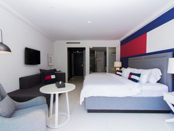 Хороший сытный завтрак. Отличное местоположение 2 минуты пешком и ты на пляже рядом обменники магазины, рестораны. Сам 2 комнатный номер очень просторный. Мини бар входит в проживание его ежедневно пополняют.