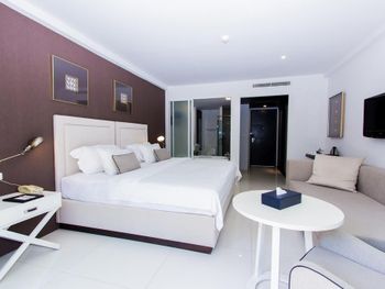 Очень близко от моря. Рядом много кафешек, магазинов, лотков с фруктами. Приветливый персонал. В номере бесплатный мини бар. Номер огромный и стильный. Правда очень неудобные подушки.