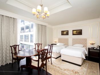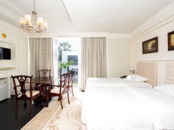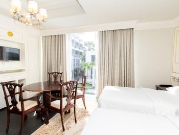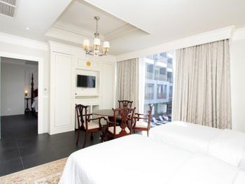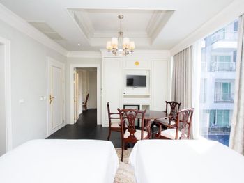 У нас был двукмонтаный номер он единственный в этом отеле находится прямо напротив ресепшена. Сам номер большой и просторный но внутри уже очень потрепанный. Кондиционер в одной комнате работал очень плохо. Сам отель не очень ухоженный.