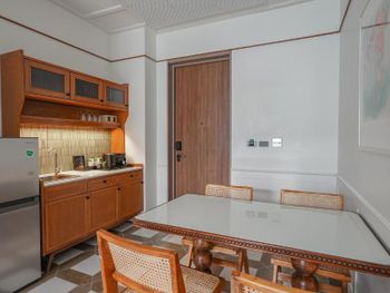 Формат вилла - очень понравился, с одной стороны полное уединение с собственным выходом к бассейну и джакузи с другой стороны ты в гостинице, есть сервис, есть люди вокруг. Прекрасный ресторан в самой гостинице с очень вкусной кухней, чистой, красивой подачей и совершенно адекватными ценами в прекрасной атмосфере. Прекрасный персонал, очень радушный и доброжелательный! Начиная от водителя который встречает в аэропорту, заканчивая рум - сервисом! Все на высшем уровне! Все продумано до мелочей, вплоть до подстилки для пляжа / резиновых тапок и зонтика в номере! Есть тренажерный зал на территории, мини-аквапарк для детей.