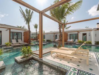 Sol Two-bedroom Suite Villa with Lagoon Access - 135 м², макс. 8/4+4 чел., вид на бассейн | 2 спальни, 2 двуспальные кровати + 2 двухъярусные кровати, 2 ванные комнаты с душем