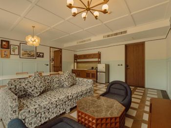 Mare Suite Villa with Lagoon Access - 75 м², макс. 4/2+2 чел., вид на бассейн | двуспальная кровать + двухъярусная кровать, гостиная, ванная комната с душем