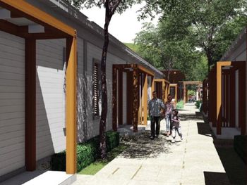Glarea Villa with Lagoon Access - 48 м², макс. 4/2+2 чел., вид на бассейн | двуспальная кровать + двухъярусная кровать, ванная комната с душем