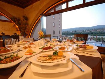 Гостям Suhan Cappadocia Hotel & Spa предлагается завтрак «шведский стол». При Suhan Cappadocia Hotel & Spa работает ресторан, где подают блюда турецкой кухни. По запросу для гостей приготовят вегетарианские, халяльные и безглютеновые блюда.