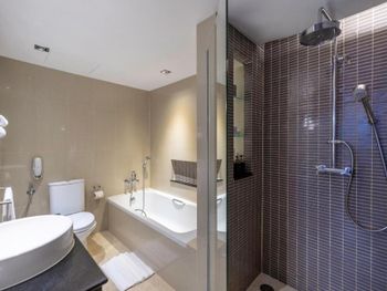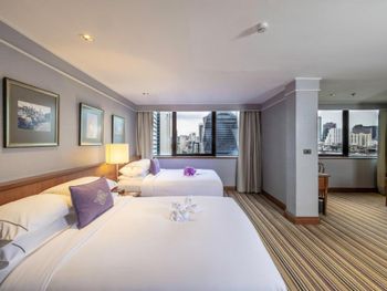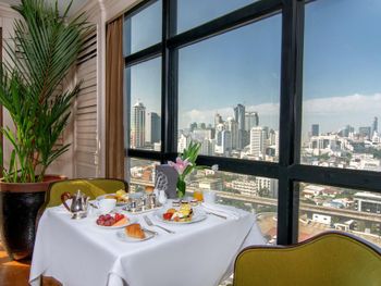 У отеля удачное расположение - достаточно близко к аэропорту Суварнабхуми и рядом есть метро. Мы жили в номере с доступом в executive lounge - нас быстро и рано заселили. Также у нас были отдельные завтраки и happy hours с бесплатными закусками и напитками - все были очень вкусно. Сам номер был на высоком этаже (19) с отличным видом, в ванной неплохая косметика. Особенно было приятно внимание к ребенку - в номере заранее был детский халат, тапочки и отличный набор детской косметики, включая пасту и щетку. Мы очень ценим такую заботу! Очень приятный и вежливый персонал. Также в отеле есть бассейн - но вода была довольно холодной и плавать было не очень комфортно несмотря на жаркую погоду.