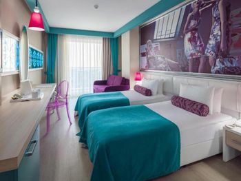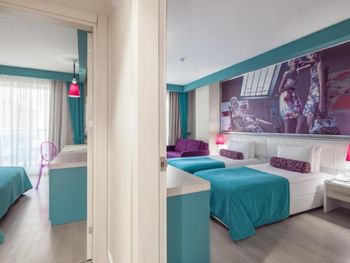 вообще никому и никогда не посоветовал бы этот отель! Отель находится в деревне, забудьте о вечернем променаде, там нет этой возможности, выйти из отеля некуда. можно выехать в другие города, около 50 евро туда-обратно на такси готовьтесь потратить, есть автобусы, дешево и сердито, но вечером они не ходят. кроме не плохого дизайна (не плохой = так себе) в номерах, больше плюсов у этого отеля нет. уборка в номерах проходит выборочно, куда уборщицы дошли там и убрано, не важно висит у вас табличка не беспокоить или нет, уборщицы все равно запрутся и будут тупить в дверях пока не пойму что они в данный момент не welcome. шумоизоляция отсутствует. матрасы не удобные и жесткие. и в целом отель с наружи выглядет достаточно потрепанный. На каждом балконе есть бывшие ласточкины гнезда, которые на первый взгляд похожи на ульи, наверное часть дизайна. еда однообразная, алкоголь разбавлен до состояния дистилированной воды. не смотря на близость пляжа и бассейна, мест вы там не найдете и причины здесь две. туристы которые с раннего утра расскладывают полотенца и в течении дня либо вообще не появляются либо к вечеру и вторая причина это своеобразный бизнес у спасателей. вместо того что бы следить за безопастностью в бассейне и на пляже персонал отеля сам расскладывает полотенца на шезлонгах, что бы потом обескураженным туристам помогать находить свободные места естественно за бакшиш (не знаю таксу, хватало послать подальше и целый день наблюдать его сверлящий взгляд). пляж- песок, вход в море - галька причем достаточно не приятная из за резкого спуска и большой глубины, буквально в 2 метрах от берега глубина 1,5 м, вообщем для детей не подходит. Анимация - Нет!, т.е. она есть но кроме продажи футболочек для детей больше ничем не запомнились, вечерние представления прям совсем никакие дневные почти отсутствуют. по соседству есть отель, в котором вечерами прям весело было и световые шоу и фейрверки и водный спорт, вообщем прям контрастировали.