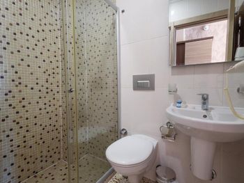Не понравился завтрак, ожидали увидеть больше из турецкой кухни, а не европейской. Поблизости куча маленьких кафешек, где мы и завтракали. Ужасная парковка прямо перед отелем, машина постоянная перемещалась администратором, которому были оставлены ключи при регистрации. И само состояние внутри апартаментов, необходимо бы сделать какой-нибудь косметический ремонт, дверь в туалетную комнату закрывалась с трудом, вода плохо сходила в умывальнике и душе