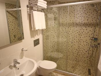 Комната была очень маленькая , меньше чем ожидали . Санитарное состояние комнаты с душем необходимо улучшить