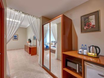 У меня был номер с гостиной. Темновато, без балкона, но огромная кровать, все работает, и не душно. Неплохой завтрак за 300 условных рублей 👍 Очень отзывчивая девушка Мария на ресепшн, впрочем, как и усатый дяденька Сирилл🙏 Стирку мне заказали, советов хороших дали много, багаж хранили, пока я в Ирак слетал. Парковки навалом !