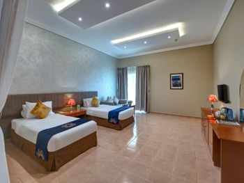 Матрасы жесткие. Они действительно очень жесткие. Такое ощущение, что доска. Надо быть к этому готовым. Еда на шведском столе однообразна каждый день. Брали размещение с завтраками и платили иногда за обед-ужин (42aed). Однажды мы захотели заплатить за шведский стол, пришли в ресторан, как обычно, а в этот день они решили ничего не готовить. По меню не было в наличии ничего, кроме бургеров. В итоге мы остались голодными. Выезд из отеля был ночью. Завтрак этих суток был оплачен. Но сухой паек собирать отказались! Деньги не вернули.