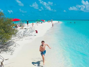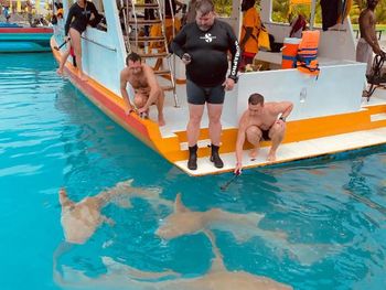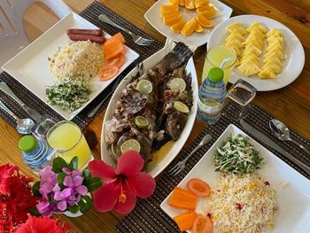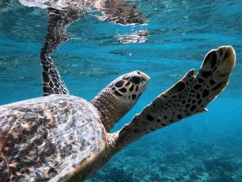 Все было идеально. Свой бикини пляж прям возле геста. Стоят лодки, немного - на них и на рыбалку и на снорклинг и прочие экскурсии. Удобный заход в воду. Но дальше 10 метров всеж нужны коралки на ноги. Есть рыбки небольшие до 30 см в длину, но разные. Можно стоя из воды в маске за ними наблюдать. И рыба игла, и группер, и рыба попугай - много разных видов. Вечером гонял на рыбалку - выловил не мало, тут же и приготовили.