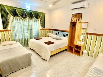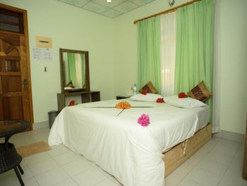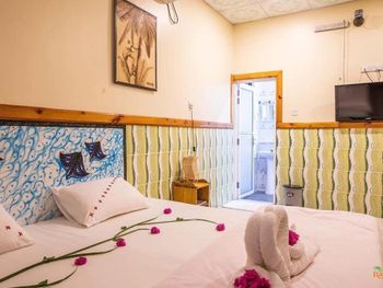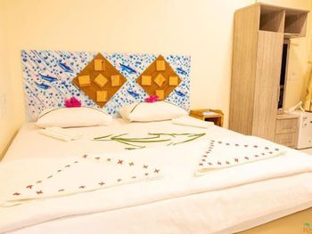 В описании отеля, номеров, удобств и всего остального сплошное вранье. В этом гестхаусе вы никому не нужны, никто не будет отвечать на ваши вопросы или помогать в их решении, вы будете буквально гоняться за сотрудниками и просить позвать хозяина или хоть кого-нибудь, что мы делали на протяжении более 2х часов после приезда, т.к. никто из них не покажет вам как включить горячую воду (а это сделать совсем не просто), как включить телевизор (который, как оказалось, вообще не работал), в номере не будет питьевой воды, чайника и чая\кофе, окно в маленьком и темном номере ( а нас уверили, что это лучший номер!) выходит не во внутренний дворик, а в общий коридор, по которому все ходят. Постельное белье и полотенца старые, в мерзких пятнах, на подушках под наволочкой ПЛЕСЕНЬ (см. фото)!!! На завтрак вы получите пережаренный омлет, 2 ужасные сосиски и сок, наполовину разбавленный водой, на ужин ( мы оплачивали завтраки и ужины) обугленную до черноты рыбу, большую миску риса и тарелку невкусных овощей. На пляже отеля постоянно находятся 4 лодки и плавать придется между ними. Рядом строится многоэтажный отель, судя по всему этого же владельца...Я не знаю, кто и почему мог написать хоть что-то хорошее об этом ужасном месте. Мы были на Мальдивах 15 раз, жили в разных отелях и гестах, но такого ужаса не видели негде...Фото прилагаю
