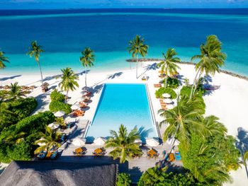 Хороший отель с чистым песком, небольшим своим рифом, красивым видом и доброжелательным персоналом (хотя не ко всем это относится). По прилету отводят в собственную lounge зону для ожидания вылета гидросамолета. По приезду на остров вам назначается человек, который должен все рассказать и помогать в бронировании столиков и развлечений. Домики очень уютные, чистота идеальная! Хотелось бы отдельно поблагодарить за ежедневную двухразовую уборку Mizanur!!! Очень доброжелательный молодой человек, каждый день радовал нас разными сюрпризами, такими как животными из полотенец, добрыми словами из пальмовых листьев на кровати. Мимо домиков всегда плавают маленькие акулы, скаты и просто красивые рыбки - за ними всегда приятно и интересно наблюдать плавая по утрам у виллы или проходя мимо идя на завтрак или ужин. Еда в ресторанах что на завтрак, что на ужин всегда радовала. Стоит обязательно попробовать хотя бы раз лобстера в Grouper Grill, по четвергам там проходит ужин с живой музыкой и шведским столом. Есть возможность сплавать к дельфинам, но не факт, что получится их увидеть (у нас получилось только со второго раза) и отдельно можно сплавать к черепахам. Отель новый и поэтому растений не так много, как на других курортах, но в тоже время это плюс, так как нет комаров.