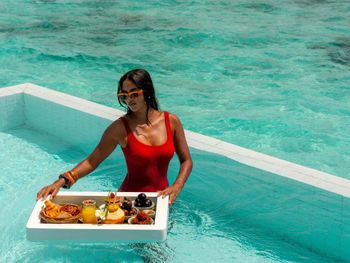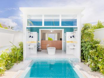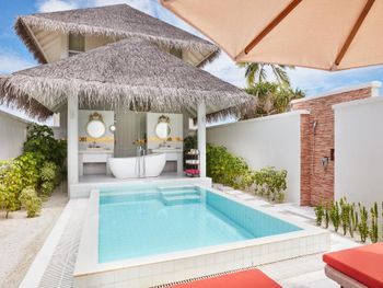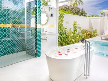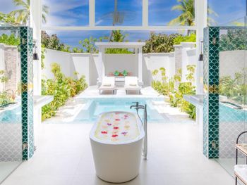 В числе удобств всех номеров курортного отеля Sun Aqua Iru Veli — собственный бассейн, собственная ванная комната с ванной, телевизор с плоским экраном и бесплатные туалетно-косметические принадлежности.