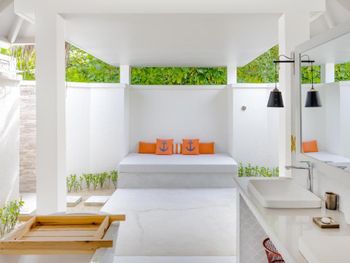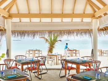 Самый главный минус- очень бедный риф. Редкие рыбки. Еда кошмарная. На уровне 3 звёзды. Каждый день почти одно и тоже. В основном острая мальдивская кухня. Основной ресторан- дешевая столовая. Ребёнок вынужден был весь отпуск на обед и ужин есть только спагетти. Записались в Итальянский ресторан. Это что то! Не рекомендую никому. Обращаюсь к администрации: нужно уволить весь персонал в этом ресторане и набрать адекватных и профессиональных людей. Они нас вообще не обслуживали. Мы не могли закончить ужин, потому что они все блюда забывали нам приносить. Не одно, не два, а все! И наших соседей по вилле так же там обслужили. И с самого начала сказали, что половины блюд нет. Виллы расположены слишком близко друг другу, поэтому шум соседнего кондиционера, чужие разговоры очень мешают. В СПА нет современного маникюра. ШИ Лаком не покроют и если вы с ним приедете и он у вас отрастет, у них даже апарата нет для маникюра и даже пилочки, которой можно снять ши лак. Так и пришлось ходить с ужасными ногтями:( для 5 звёзд это конечно неприемлемо.