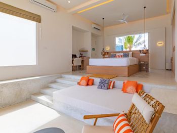 1. Вода между пляжем и волнорезами мутная, где-то даже илистое дно. Я понимаю, что это вынужденная мера от размывания острова, но плавать там желания не было. Хорошо, что есть вторая сторона острова, да и отплыть можно подальше. 2. Всего 2 ресторана a la carte. Пляжные виллы не приватные, т.к. отель новый и растения ещё не выросли. Для нас это не было критично, просто предупреждение для тех, кому важно.
