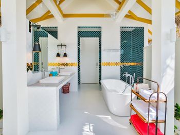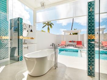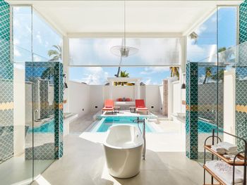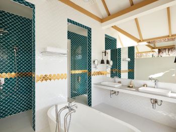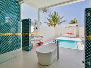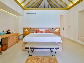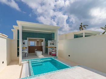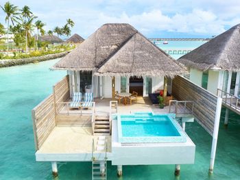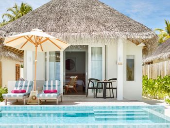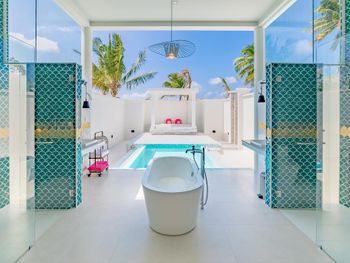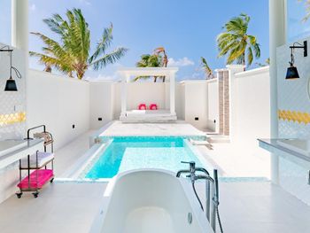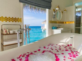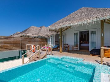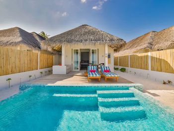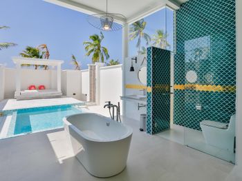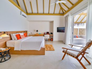 В числе удобств всех номеров курортного отеля Sun Aqua Iru Veli — собственный бассейн, собственная ванная комната с ванной, телевизор с плоским экраном и бесплатные туалетно-косметические принадлежности.