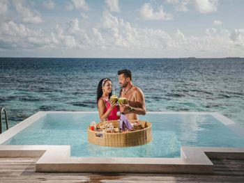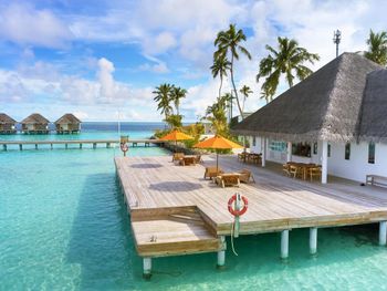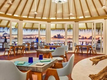 Вторая половина марта 11 ночей водная вилла. Все включено. Впечатления отличные. Встреча, начиная с аэропорта, трансферт в аэропорт местных линий, зал ожидания - все без проблем. В отеле встретила русскоговорящая девушка Аня (большое отдельное спасибо), которое отслеживала нас во время всего отдыха. Обслуживающий персонал был в основном со Шри-Ланки, хорошо обученный. Отличные чистые пляжи. С западной стороны практически нет кораллов. Кому нравится сноркеллинг, с восточной стороны замечательный домашний риф. Много разнообразной живности. Глубина около вилл хорошая даже при отливах. Питание отличное. Качество СПА процедур неплохое (цены не низкие как и везде на Мальдивах). Неплохой выбор коктейлей во все включено. Один из лучших отелей в которых доводилось побывать.