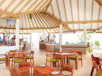 Самый главный минус- очень бедный риф. Редкие рыбки. Еда кошмарная. На уровне 3 звёзды. Каждый день почти одно и тоже. В основном острая мальдивская кухня. Основной ресторан- дешевая столовая. Ребёнок вынужден был весь отпуск на обед и ужин есть только спагетти. Записались в Итальянский ресторан. Это что то! Не рекомендую никому. Обращаюсь к администрации: нужно уволить весь персонал в этом ресторане и набрать адекватных и профессиональных людей. Они нас вообще не обслуживали. Мы не могли закончить ужин, потому что они все блюда забывали нам приносить. Не одно, не два, а все! И наших соседей по вилле так же там обслужили. И с самого начала сказали, что половины блюд нет. Виллы расположены слишком близко друг другу, поэтому шум соседнего кондиционера, чужие разговоры очень мешают. В СПА нет современного маникюра. ШИ Лаком не покроют и если вы с ним приедете и он у вас отрастет, у них даже апарата нет для маникюра и даже пилочки, которой можно снять ши лак. Так и пришлось ходить с ужасными ногтями:( для 5 звёзд это конечно неприемлемо.