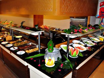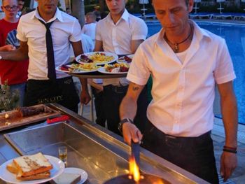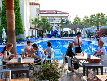 В апарт-отеле Sun City ежедневно накрывают завтрак и ужин по типу "шведского стола". Кроме того, работает ресторан с обслуживанием по меню, в котором можно попробовать закуски, различную пиццу, блюда турецкой и интернациональной кухни. В баре у бассейна подают прохладительные и алкогольные напитки.