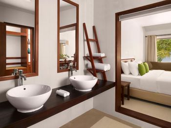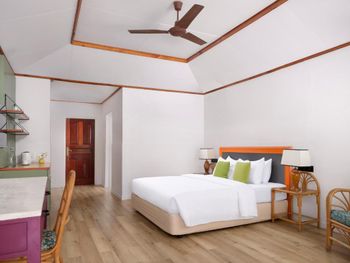 Всё! Это ужасный старый номер с отвратительным душем и мебелью от которой воняло старостью (((( на территории отеля грязь и крысы, основной ресторан старый, еда ужасная на индийский лад, а вино которое предлагают во все включено просто поило уксусное ...... этот отель испортил всю картину представляемую о Мальдивах
