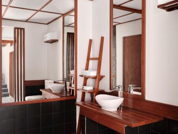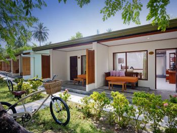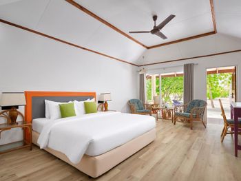 У нас была вилла на воде. Номер ооочень старый. Все пошарпанное до невозможности, старое, сантехника разваливается, ванна просто омерзительная. При заселении на полу гигантский ком пыли. Убирались в номере часто, но полы не мыли ни разу и грязища была просто жуть, хоть мы и ходили в тапочках. Переходников в розетках не дождёшься, забывали по несколько дней приносить пляжные полотенца.