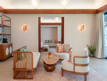 Отель не организовал поздний выезд, как обещал в переписке и мы вынуждены были покинуть отель за восемь часов до вылета, хотя были более поздние авиарейсы в Мале. Мы оплатили дополнительную ночь, для того, чтобы покинуть отель вечером, но пришлось выехать в 15—00. Нам пришлось ждать самолет в Мале 6 часов. Отель не организовал тест на covid до вылета и нам пришлось делать тест в Мале срочно за 230$ на человека. Другие отели предоставляли такую услугу за день до вылета по цене 70-80$. Персонал отеля , в том числе и русско говорящий не заинтересован в комфортном отъезде своих гостей. Виллы на воде устарели и требуют реновации, хотя поддерживается чистота, уборка два раза в день. Очень плохой напор воды в душе.