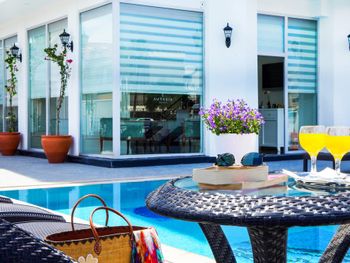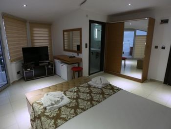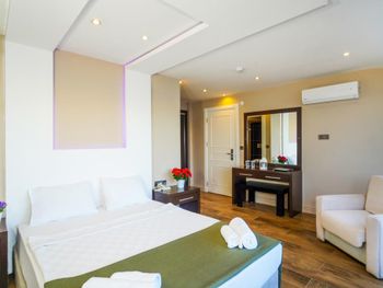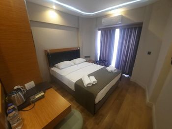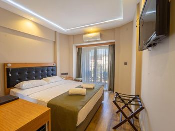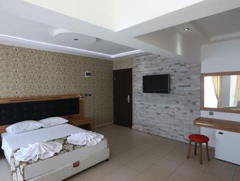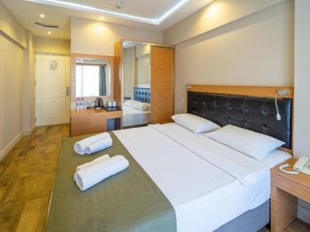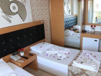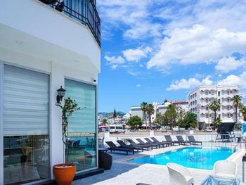 На территории отеля небольшой бассейн , в нём никто не купается , все ходят на море , шикарно один поплавал . Я уже писал ниже , что локация в городе лучше не придумаешь . Да автовокзала идёт прямой автобус 30 лир , Остановка 100 м . Напор воды , исправность сантехники на должном уровне , постель и бельё без всяких нюансов .