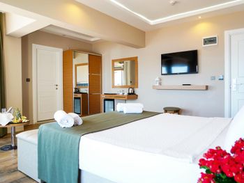 Завтрак шведский стол, вкусный, свежий, хороший выбор продуктов. Комната просторная, с видом на море. Правда вид как на фото отеля только с верхних этажей, на третьем этаже немного загораживает дерево и здания первой линии. Но в целом все-равно красиво.