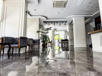 Заселили в хороший угловой номер с остекление на 2 стороны, но кондиционер работал в режиме вентилятора, что при жаре +45, не добавляет комфорта. Сообщили о проблеме, и вместо того чтобы вызвать мастера, проверить кондиционер, и если необходимо дозаправить фреон, ходила куча народа, все с умным видом тыкали в пульт и прикладывали руки к кондиционеру. Попросили поменять номер, поменяли, но он оказался по площади менее заявленного на сайте, и кондиционер работал не намного лучше чем в предыдущем номере. Опять повторились безуспешные манипуляции с пультом персонала. Попросили еще раз поменять номер, им нам в достаточно хамской форме было отказано. Так что не соблазняйтесь видами из номера на фото, оно того не стоит. За те деньги которые просят, можно найти варианты намного интереснее. Резюме - дорого и не комфортно.