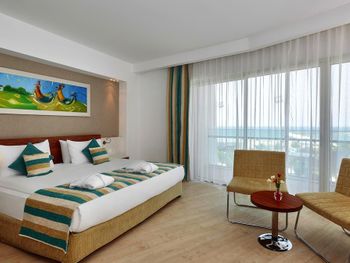 Яркие номера курортного спа-отеля Sunis Evren Beach со вкусом обставлены современной мебелью. К услугам гостей номера, оснащенные кондиционером, телевизором и балконом.