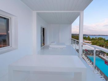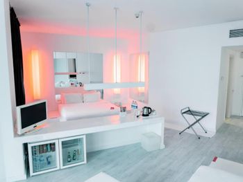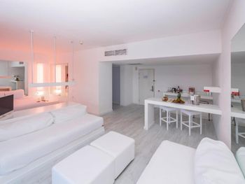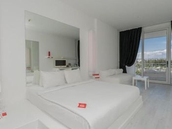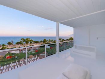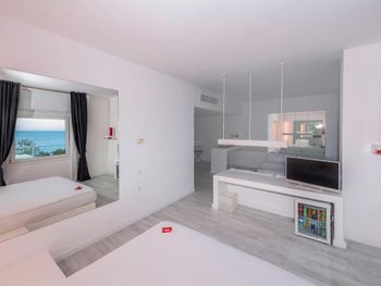 Ужасное освещение, белые коридоры, стены, полы как в каком то фильме или больнице для психически больных, «типа»кинотеатр в душном опять же белом помещении, красное освещение везде, в общественных туалетах вообще странное освещение😳. Публика тоже своеобразная, такое впечатление все ищут приключений на одно место, это на отдыхе норм., но как то уж очень как сейчас модно, очень свободно. Вообще молодёжь рано утром в голос болтают на балконах, выпивают орут или только пришли. Рядом с нашим номером выставили поднос с остатками еды, так сутки простоял у двери🙈🙈. Но часто как я поняла там свадьбы отмечают, может из за того что холл не обычного дизайна фотографии красивые получаются. Вообщем сняли номер не помню уже точно на 2-3 дня проездом, в соседнем Риксосе не было номеров вообще и если бы не отсутствие номеров в соседнем отеле ни за что бы здесь не жили. Ужасный на мой взгляд отель, странный, не уютный.