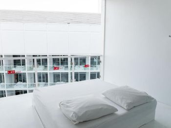Hətsiz çox güzgü və ağ rəng var. Otağın 2 divarı güzgüdü. Hər şey ağ rəngindədi. Çox ağ olmağı göz ağradır. Otaqda hər iki divarın güzgü olmağı isə çox diskanfort edir.