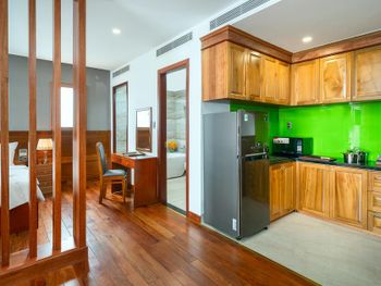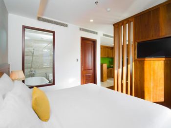 Расположение отличное наверное самое лучшее в Дананге , рядом есть все и море и кафе и массаж и продукты . Ребята в отеле очень отзывчивые . Номер апарты супер!! Завтрак не большой по выбору но каждый найдет что поесть , и суп и яйца и фрукты , и салаты , и мясо.