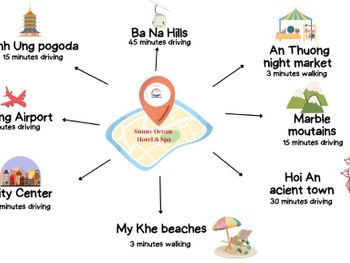 Sunny Ocean Hotel & Spa располагается на расстоянии 2,8 км и 3,4 км соответственно от таких достопримечательностей, как Мост влюбленных в Дананге и Музей скульптуры чамов. Международный аэропорт Дананг находится в 6 км.Парам особенно нравится расположение — они оценили проживание в этом районе вдвоем на 9,0.Расстояние, указанное в описании, рассчитано с помощью © OpenStreetMap