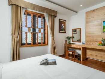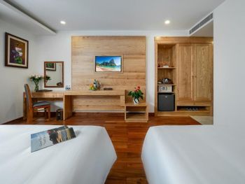 Расскажу подробно по порядку, но для тех кому лень читать спойлер - отель отличный, берите не прогадаете! Итак, не успели мы открыть дверь такси около отеля, как стоял уже парень, готовый взять наши сумки и сопроводить к рецепции, а другой сотрудник уже открыл нам дверь, чтобы мы не утруждались сами(кстати, практически всегда, когда мы выходили и заходили, если сотрудник был рядом, то он открывал дверь). Холл очень симпатичный, красивая мебель из дерева, выглядит очень добротно и массивно. Сотрудники на ресепшен говорят немного по английский (но я вообще не вижу проблемы в языковом барьере, есть же Гугл переводчик. Мы на протяжении всего времени во вьетнаме только так и общаемся, и нам удобно говорить на родном и им и вероятность ошибок и не понимания меньше). Мы приехали где-то в 15:00, поэтому без проблем нас сразу заселили, дали номер 303, соответственно, на 3 этаже. Я попросила повыше, девушка что-то посмотрела в компьютере, но сказала что к сожалению занято. В целом сотрудники на ресепшене очень приветливые, всегда улыбаются здороваются и готовы сразу придти на помощь! Например, у нас выпали батарейки из сейфа, когда мы его захлопнули, и он выключился! Через 1 минуту уже мастер с ключами и чудо-прибором был у нас в номере и все помог сделать) Номер отличный, мы зашли - было очень чисто, и после каждой уборки нареканий к чистоте не было(даже не всегда забирали чаевые, которые мы специально оставляли). Вообще, что касательно чаевых, тут никто их не требует и не ждет, а если даешь, то они искреннне радуются. Это не только в отеле, это во всем Дананге так) В номере все работало, все средства гигиены были в полном комплекте. Одно полотенце под ноги и по 2 больших и по 2 маленьких полотенца. Так же были вьетнамки, в которых можно было, например, пойти в бассейн, но я иногда и на море их одевала! Бесплатно в номере вода, кофе, чай. Есть бар и снеки, но это за деньги, а так же можно заказать по меню еду в номер - выбор большой!