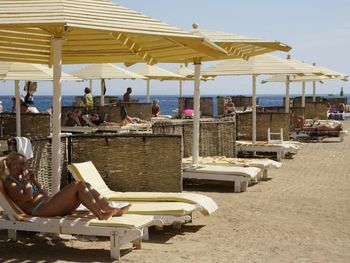 Убирали каждый день вроде, но всегда в середине дня, когда самый солцепек и ещё недовольно бормотали что мешаешь им убираться так как припёрся с пляжа.