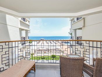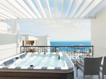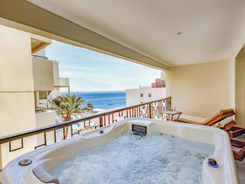 Предоставили номер не соответствующий фото на сайте. Без вида на море нормального. Вода в душе еле текла и это в полу люкс… джакузи зачем то поставленное на балконе воняло тухлым.