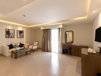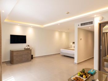 В номерах среди удобств балкон или терраса с видом на море или бассейн, кондиционер, мини-бар и телевизор со спутниковыми каналами. Кроме того, в распоряжении гостей собственная ванная комната с ванной. В некоторых номерах обустроена гостиная зона с диванами.