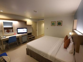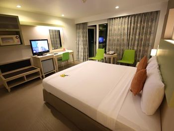 Номер достаточно большой, удобная кровать, есть микроволновка, чайник, посуда. Уборка ежедневно, полотенца меняют только если их оставить на полу. Предоставляют мыло, шампунь, гель для душа. Персонал на ресепшен очень приятный и милый, при заезде предлагают велком-дринк, мы были такие уставшие, что даже не попробовали, не знаю что там было, похоже на яблочный сок) На завтрак не сказать, что много всего, но вполне достаточно, чтобы наесться. Из фруктов - ананасы, арбузы, драгон. Яйца только жареные, кофемашины нет, кофе в прозрачных чайниках (не очень вкусный). Расположение хорошее, рядом ТЦ Марина, на мой вкус там самый приятный ночной рынок, вечером живая музыка, но цены не самые дешевые. Близко Терминал 21, ночной рынок с самолетом, обе улицы с тук-туками, массажных салонов тоже полно.