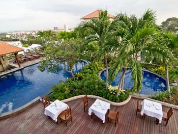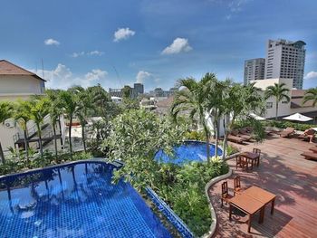 Расположение отличное! Рядом два торговых центра, пляж, массажные салоны, кафе и напротив прокат мопедов. Отличный бассейн на крыше. Хороший завтрак) Есть маленькая библиотека.