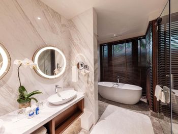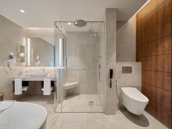 Чистота, сервис, ежедневные уборки, удобная локация, с отеля можно попасть в торговый центр. В номере есть управление освещением и шторами, туалет с подогревом, в наличии и душ и ванна.