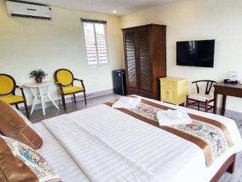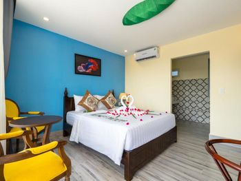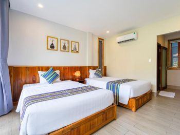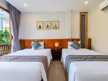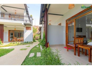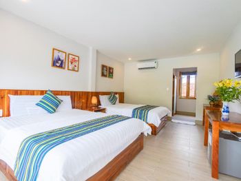 Очень тихое место, не считая постояльцев, которые кричат в бассейне по ночам. Бассейн круглосуточный. Хорошо, что у нас были номера с видом на сад. Хороший санузел, удобная двуспальная кровать. Есть простые вьетнамские завтраки. Красивая маленькая территория